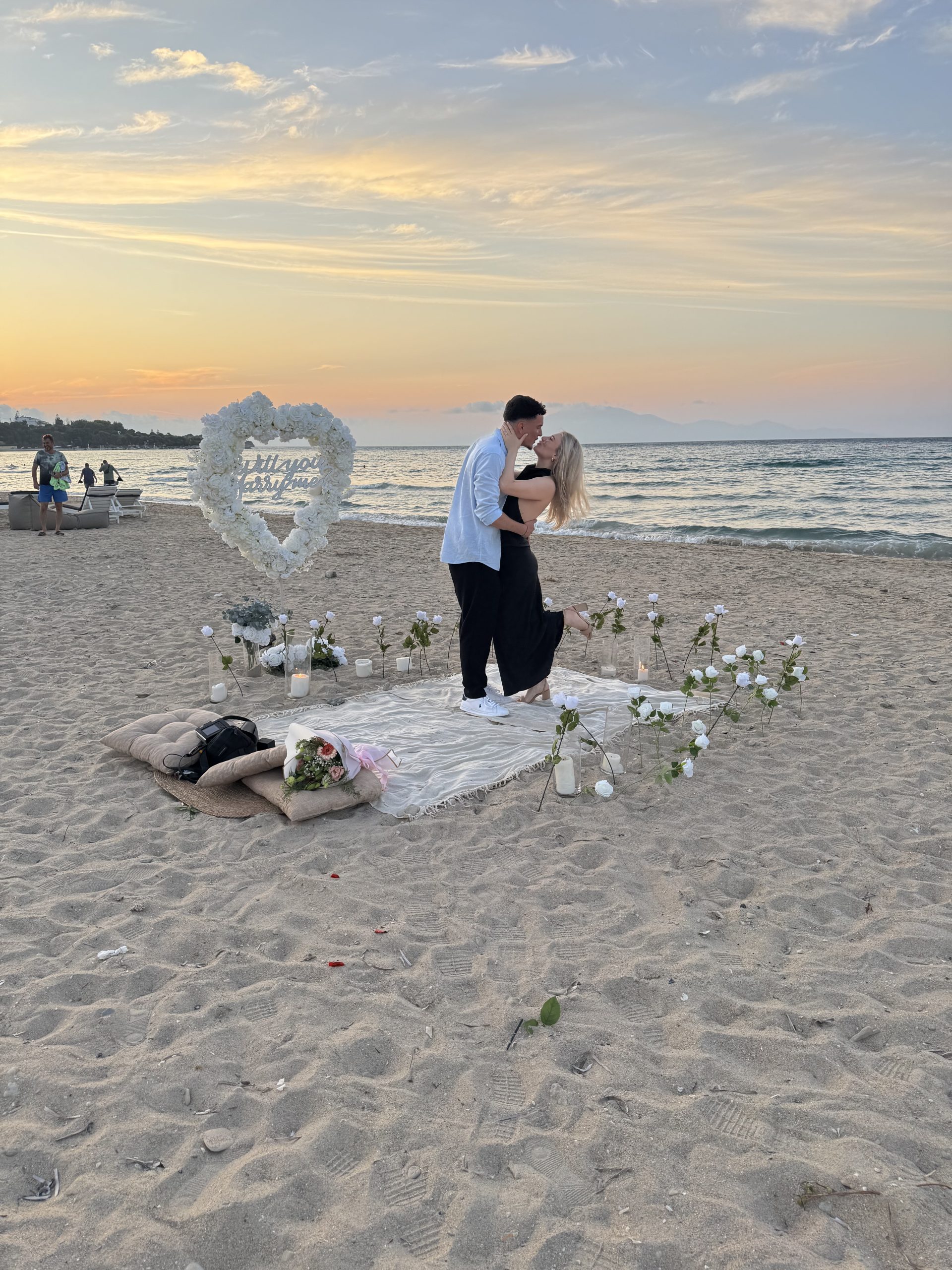 As the sun set over the Ionian Sea, he asked, and she said “yes.”A romantic beach proposal surrounded by soft