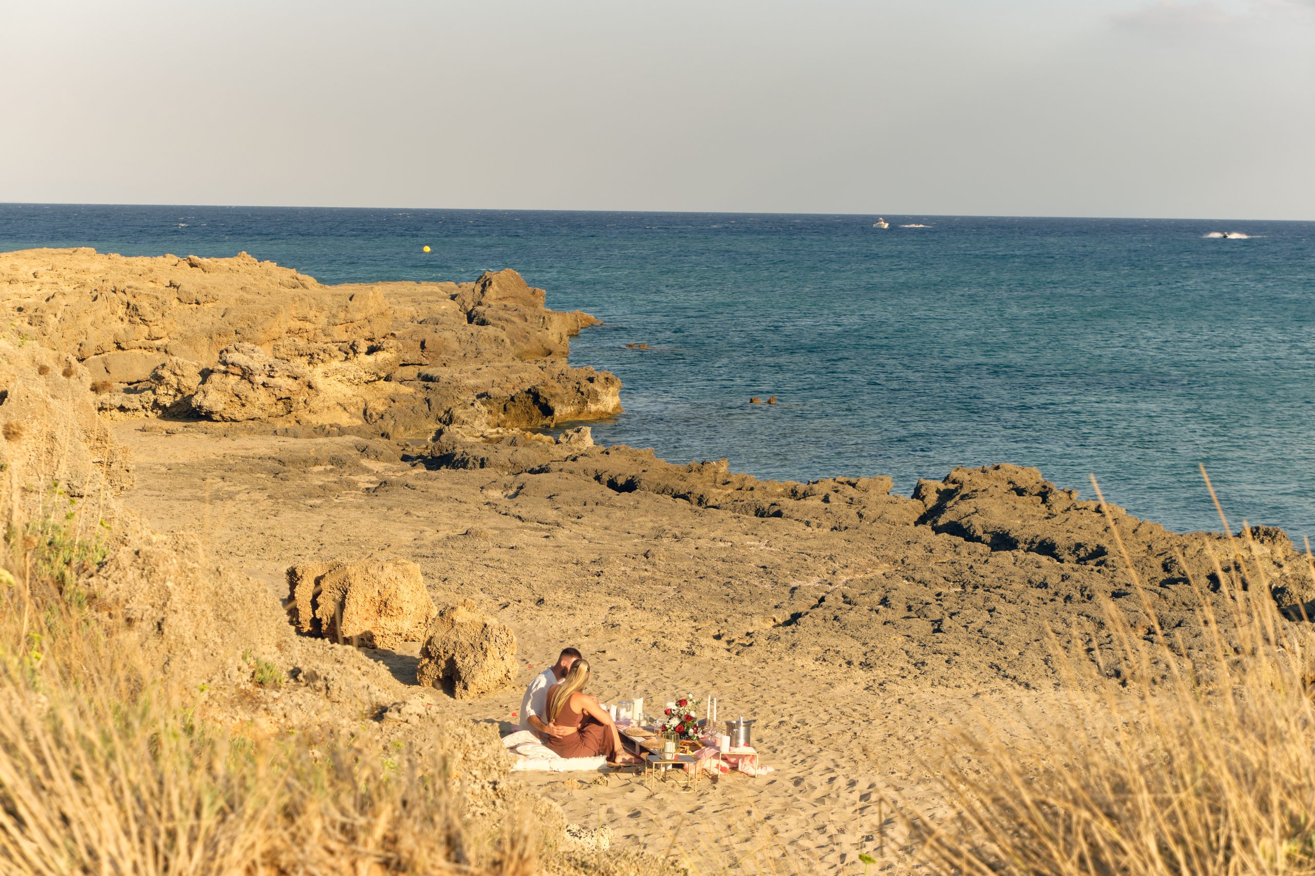 A quiet spot between rocks, with the sea just steps away, became the setting for this heartfelt proposal.