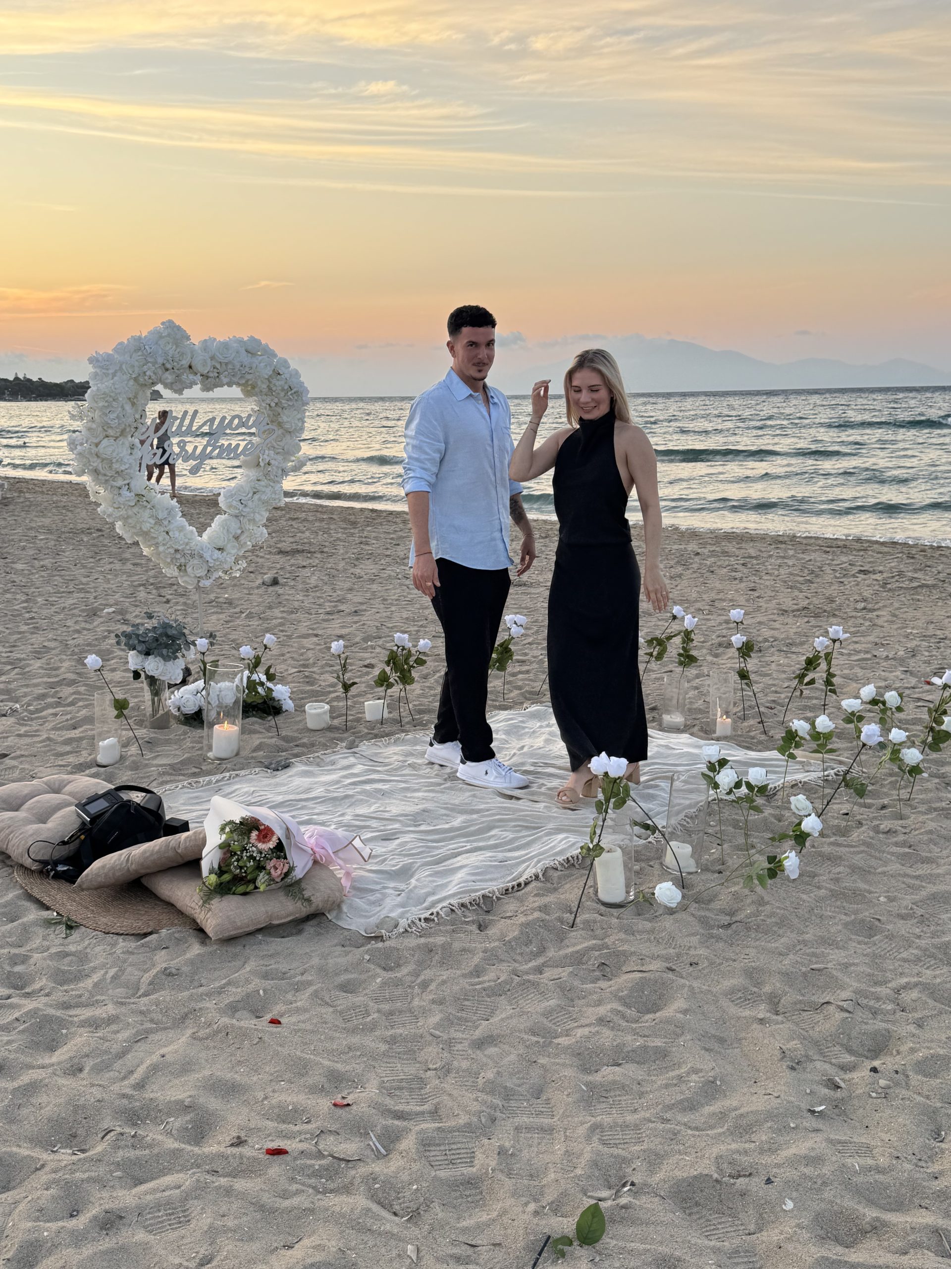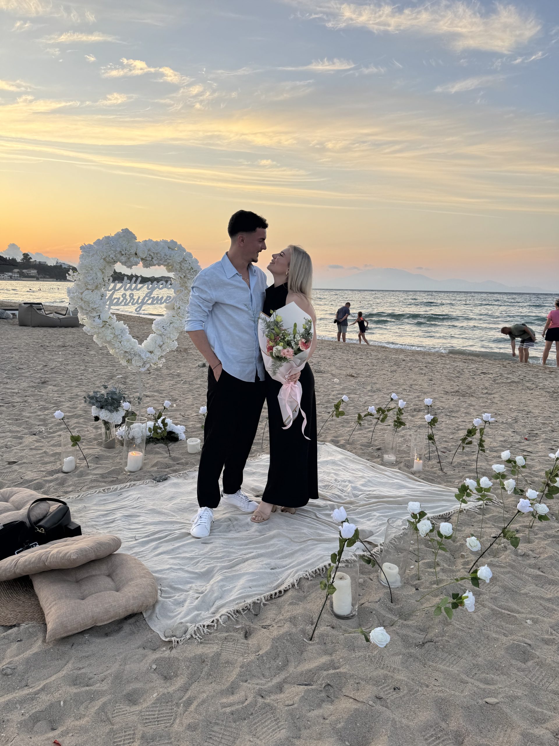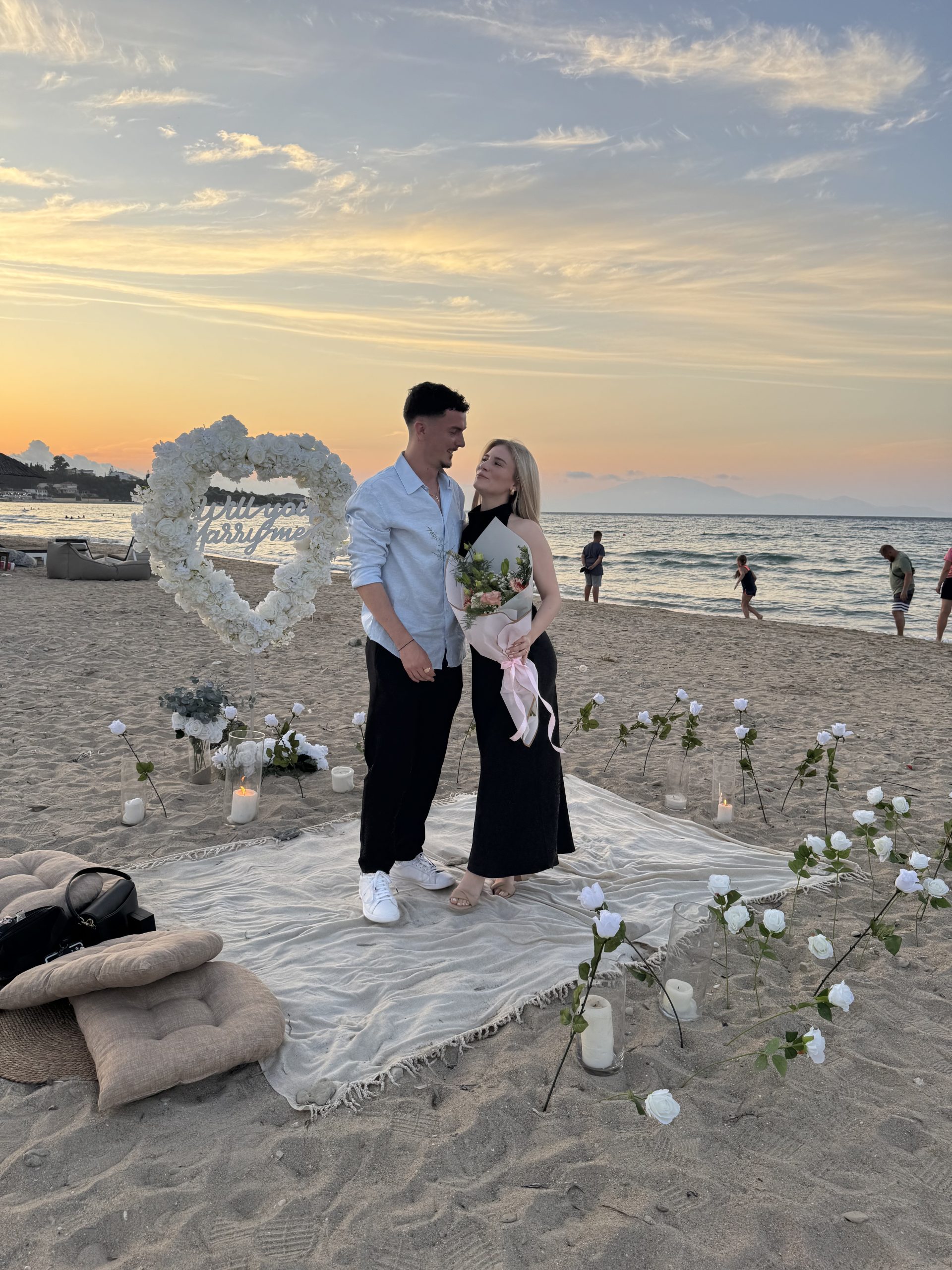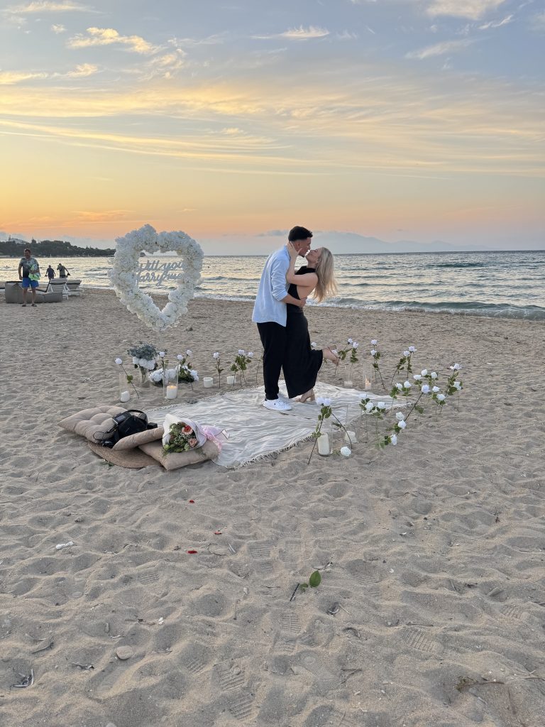 As the sun set over the Ionian Sea, he asked, and she said “yes.”A romantic beach proposal surrounded by soft light, white roses, and pure happiness.Planned with love to create a moment they’ll never forget.