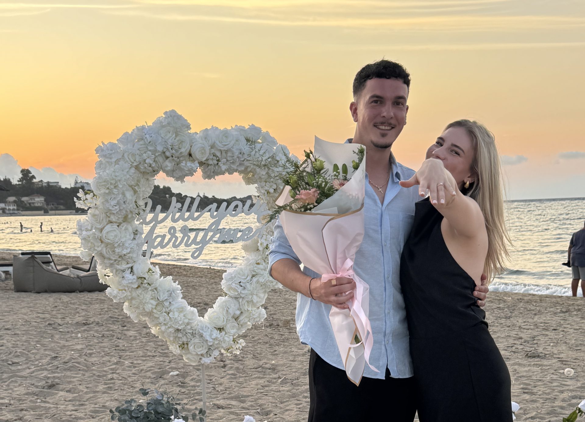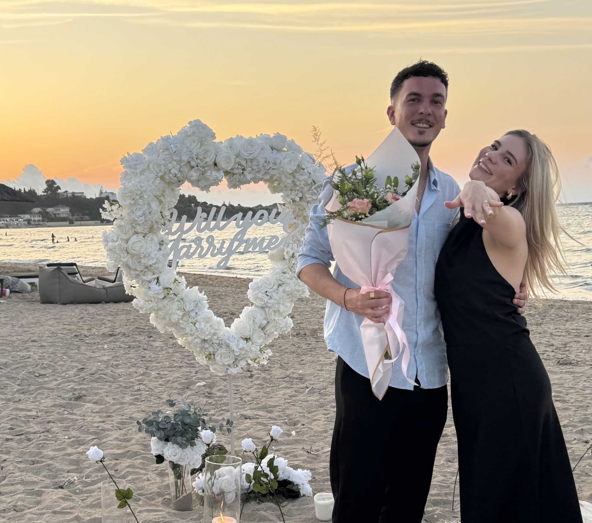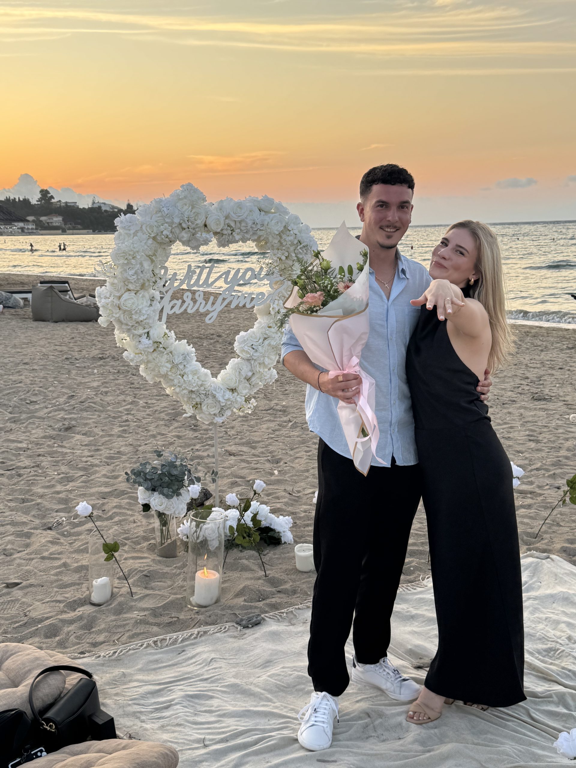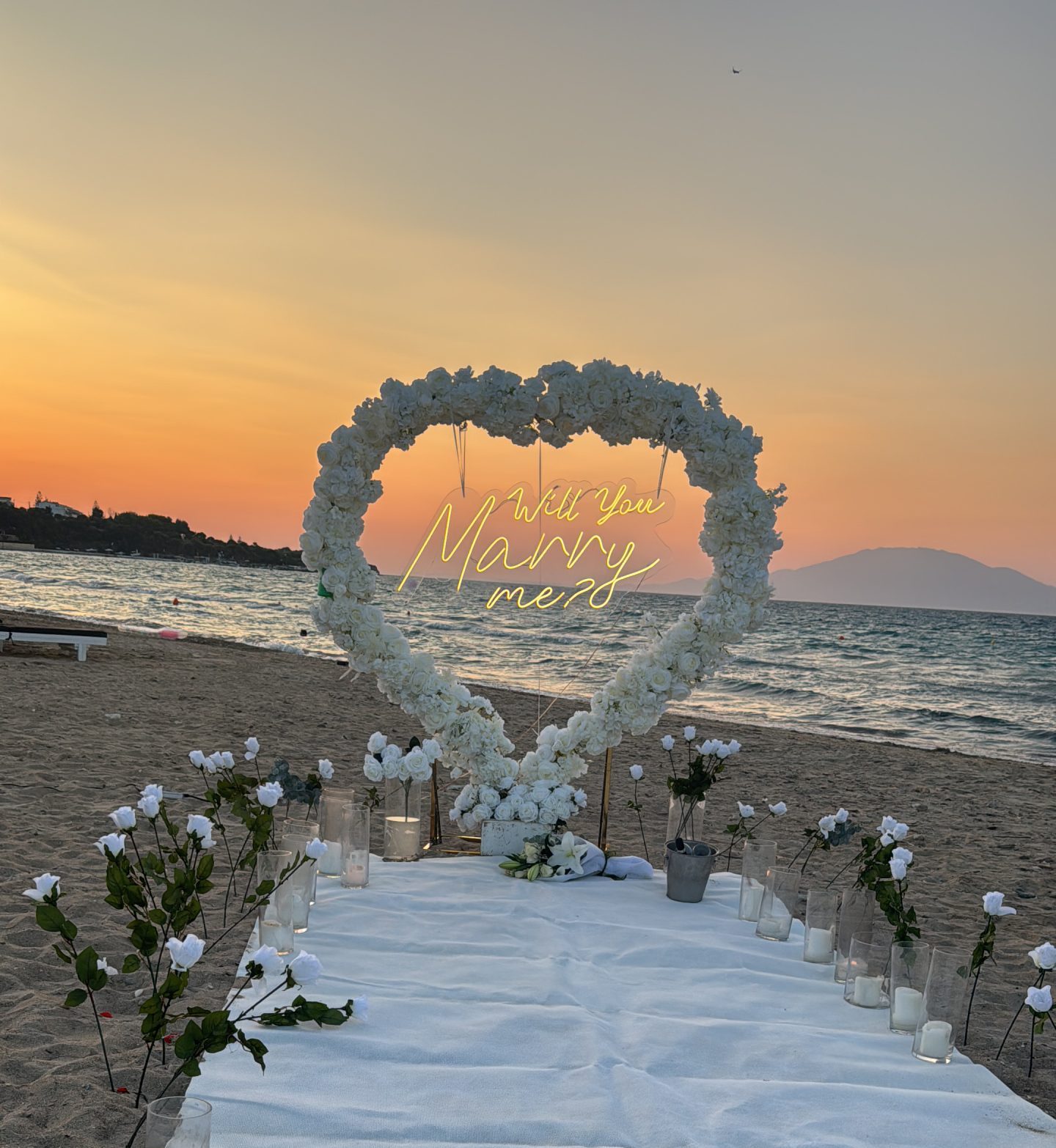As the sun set over the Ionian Sea, he asked, and she said “yes.”A romantic beach proposal surrounded by soft light, white roses, and pure happiness.Planned with love to create a moment they’ll never forget.